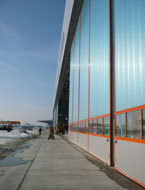 Откатные опорные ворота 168х14 м в новый ангарный комплекс бизнес-авиации, заказчик - ООО «Авиа-Групп», международный аэропорт «Шереметьево-1».